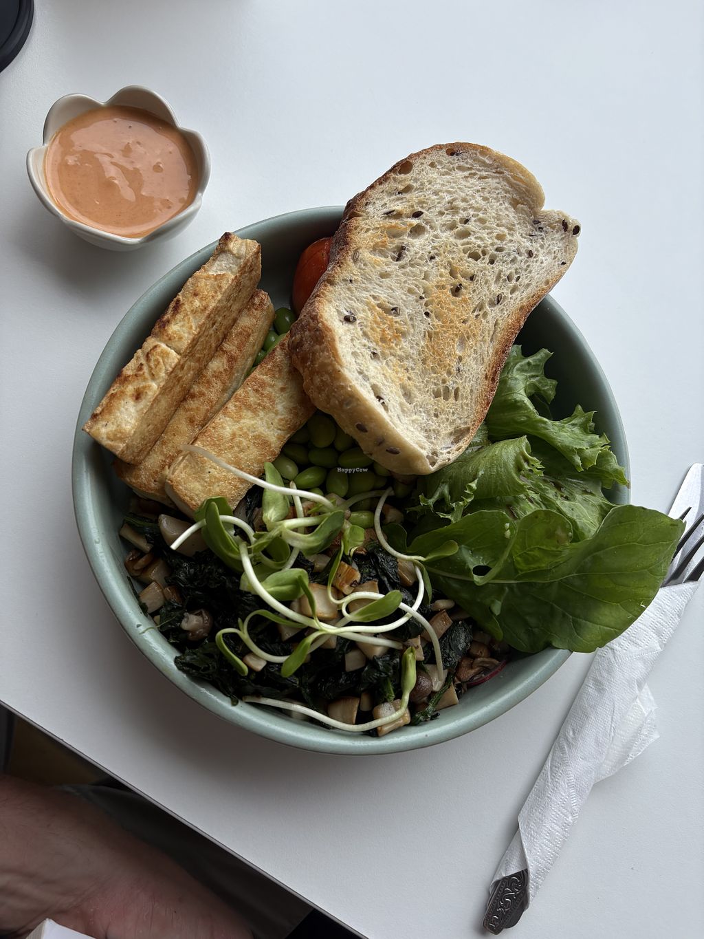 Savory Bowl with the classic edamame, tofu, spinach+mushrooms