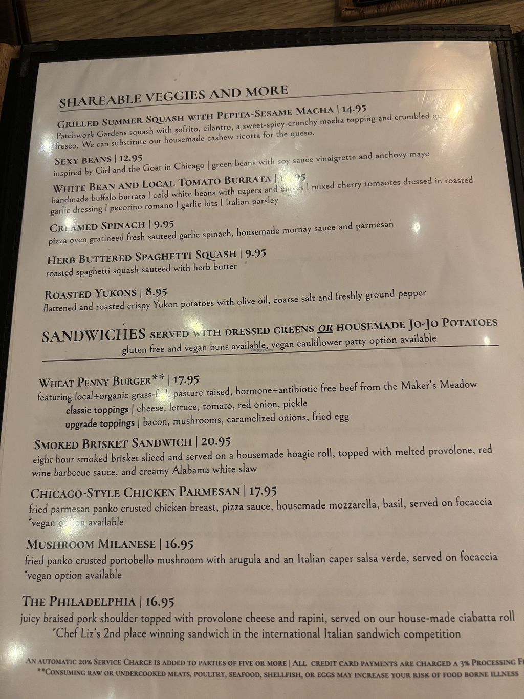 Updated 2025: The wheat penny menu has stepped away from labeling options as vegan, which I find sad. You can still veganize anything, the servers are VERY knowledgeable and the best about confirming ingredients and allergens.