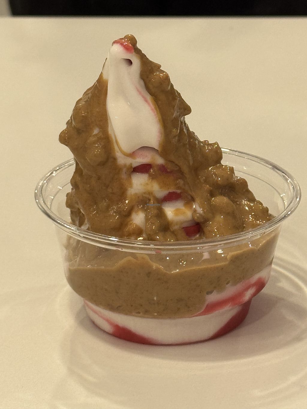 All vegan Vanilla and Pomegranate twist soft serve with biscoff drizzl…