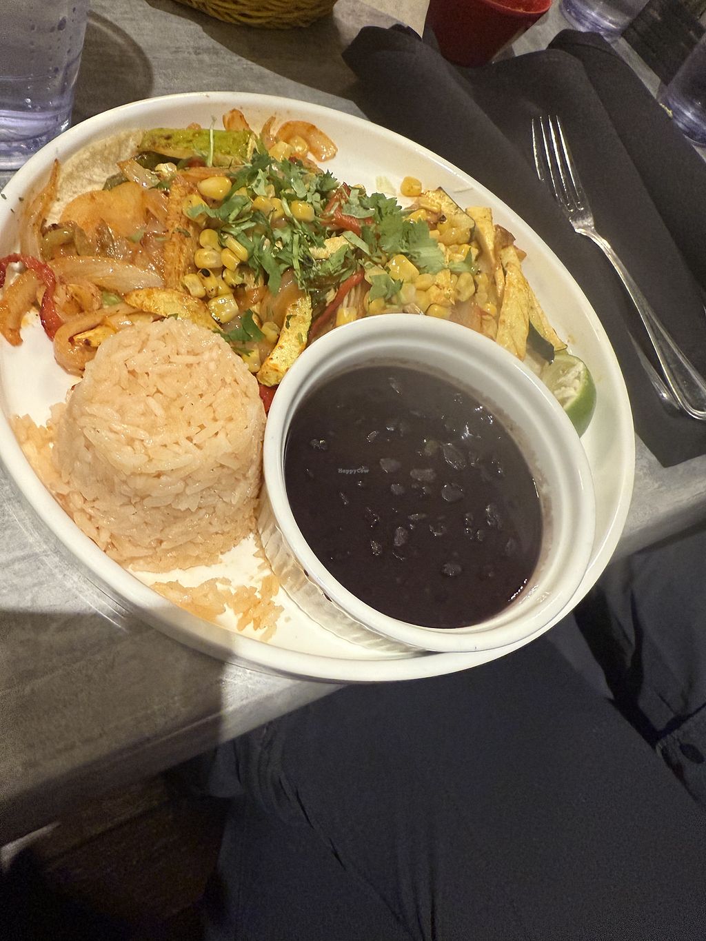 Read moreside and black beans. I had to request pico de gallo even though it was included in the dish on the menu. They brought a side of the missing squash and zucchini and the pico de gallo when we requested. We ordered a side of guacamole. For $21.00 ( burrito only) it was a big disappointment. No other options for plant based.