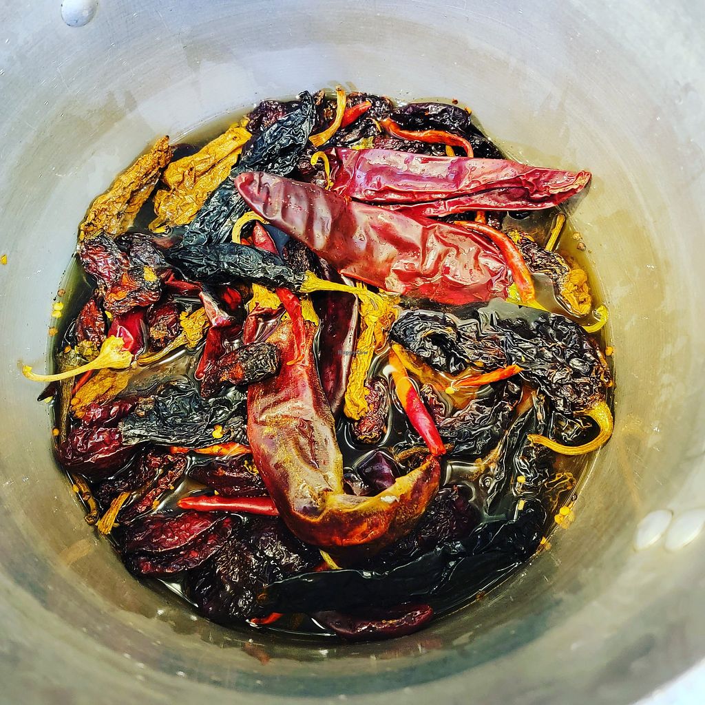 Vegan refried beans, chiles!