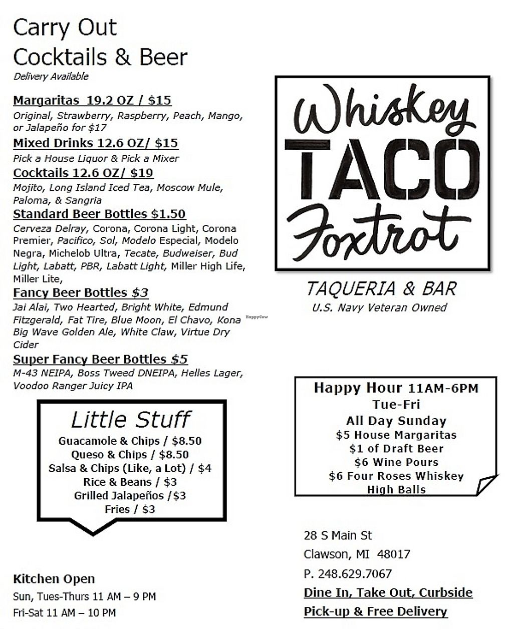 Carry out Menu! Free Delivery and To Go Cocktails.