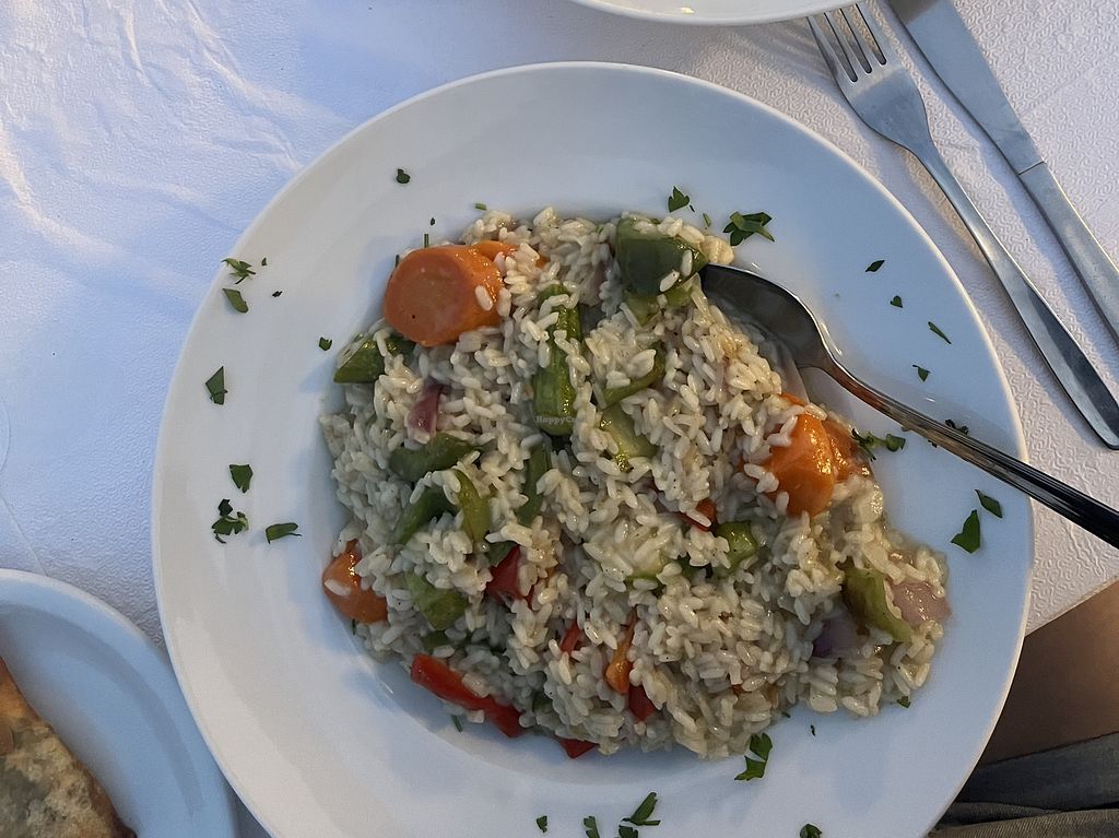 They were so nice and able to emit dairy from their vegetable risotto making it fully vegan! The spanakopita (spinach pie) is also vegan. They also have other Greek dishes that are traditionally vegan. Very delicious all around!
