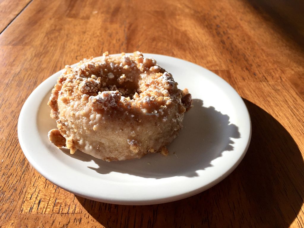 Very comfortable coffee shop, stopped in and had a curry tofu burrito, flavors were delicious. The maple banana donut was cooked just right, sweet and soft, made for the perfect breakfast!