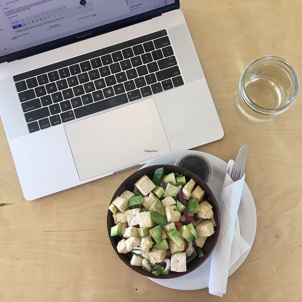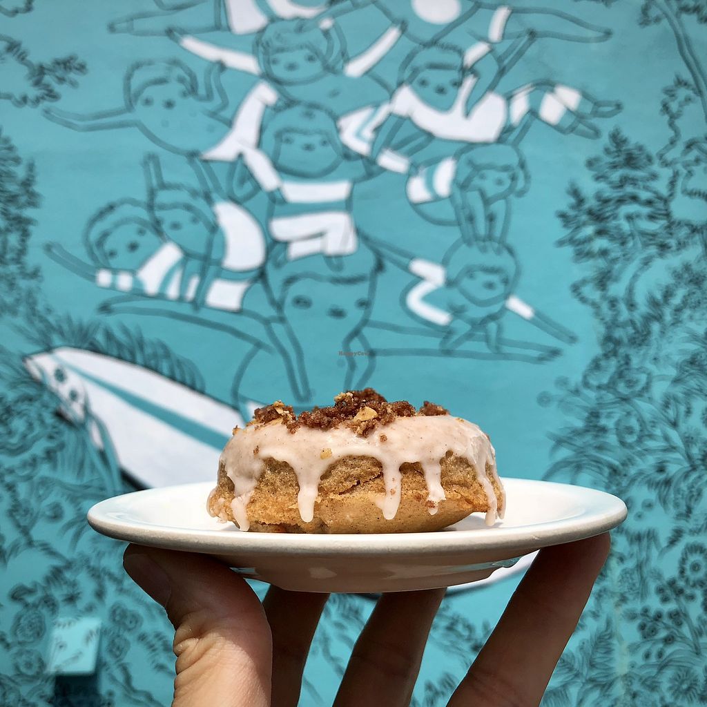 Vegan options aplenty, very green cafe, right down to compostable cold drink cups and straws. Had the tiger tofu wrap and a banana donut. Delicious!!