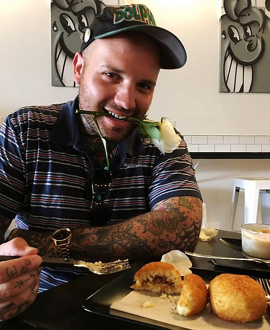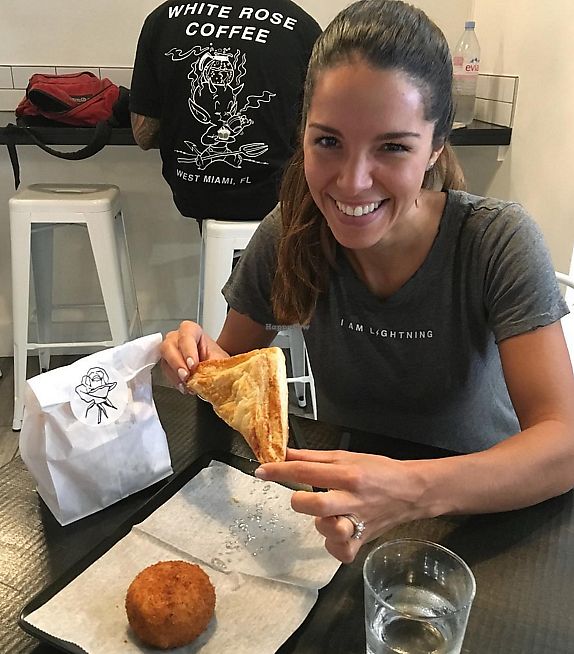 romantically enjoying Cuban style papa rellena (stuffed potato ball) w…