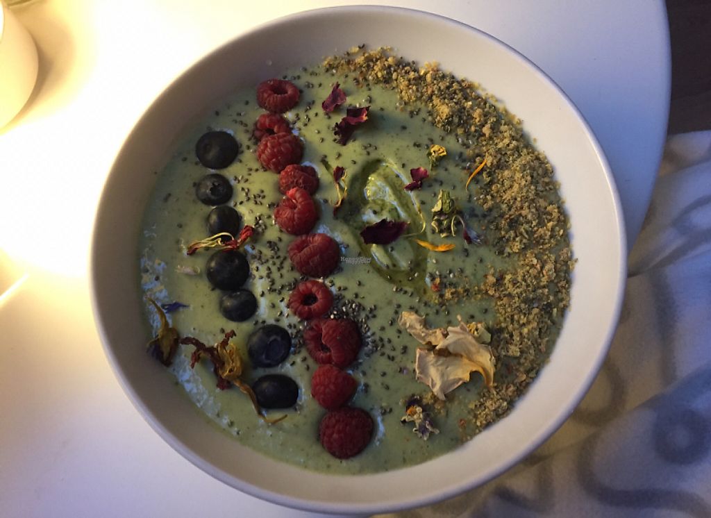 Lovely cafe set in a cosy building decorated with fairy lights. The cafe is attached to a large yoga studio that highlights it healthy vibe.