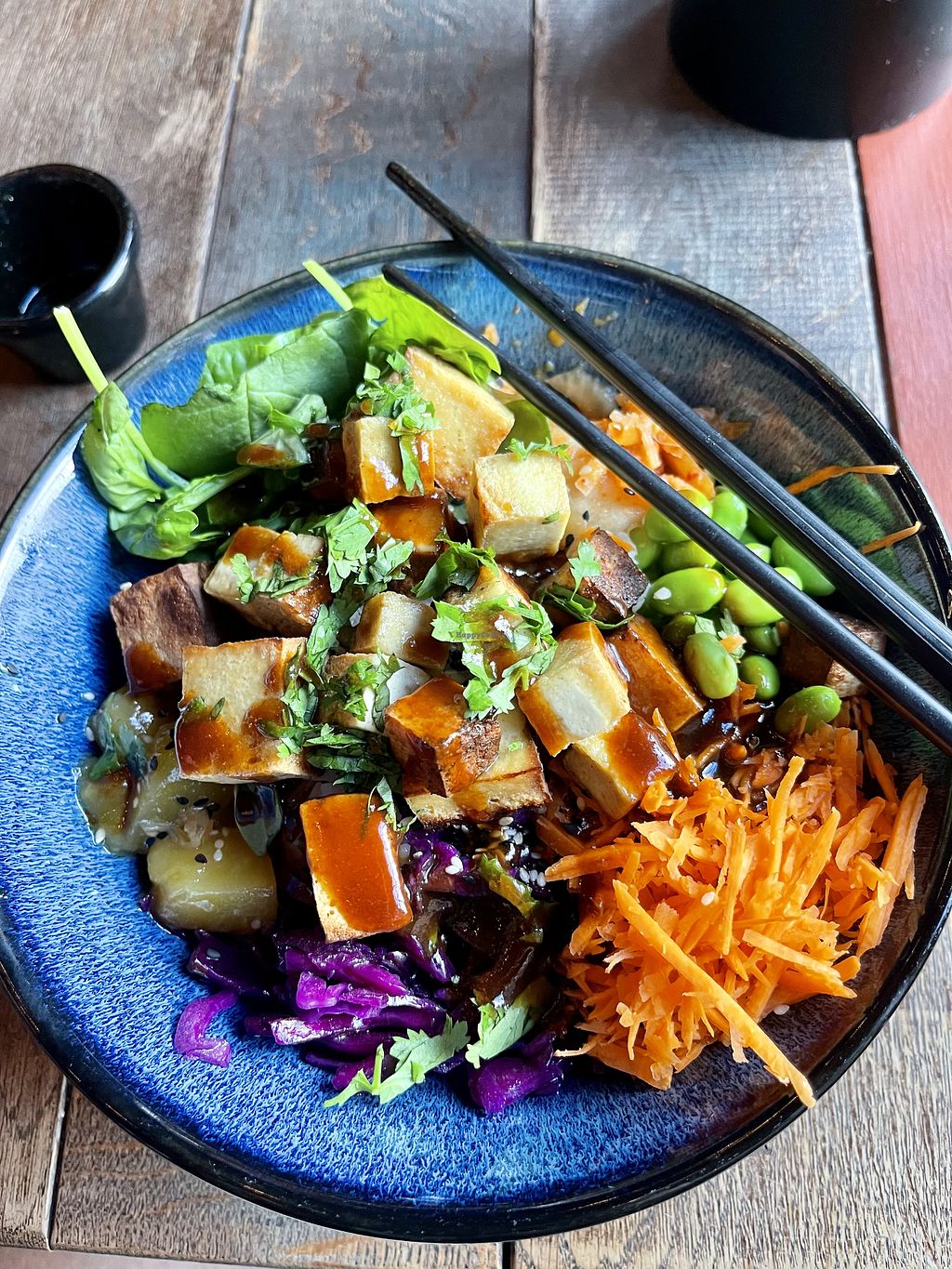 Serves meat, vegan options available. Restaurant with breakfast, lunch dinner and a bar. Vegan dishes are labelled and include bowls, vegan pancakes, sandwiches, curries with tofu, ramen and various Asian appetizers. There is also a purely vegan food truck on site with fast food. Open Tue-Thu 09:00-00:00, Fri-Sat 09:00-03:00, Sun 09:00-02:00. Closed Mon.