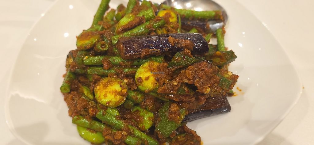 Very good vegetarian place. They don't overdo mushroom or mock meat, but use a lot of vegetables, which is great. The Assam pedas curry, Sambal king and lotus root were all great. Ajak in particular was very good, nice sauce. Noodles needs improvement, a bit bland. And water should be provided free, should be charging for normal water.