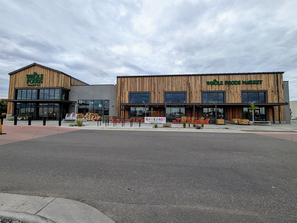 Large and well-stocked natural foods supermarket chain, acquired by Amazon.com in 2018. Offers selections in natural groceries and specialty foods, nutritional supplements and vitamins, fresh fruits and vegetables, as well home cleaning and natural body care products. Find vegan foods like tofu and soy products, plant milks, vegan ice cream, vegan cheese, frozen meals, vegan burger patties, cereals, nuts, and much more. Has deli and prepared foods department. First Whole Foods Market in the State of Montana. Est. Feb 2023. Open Mon-Wed 8:00am-9:00pm, Thu-Sun 7:00am-9:00pm.