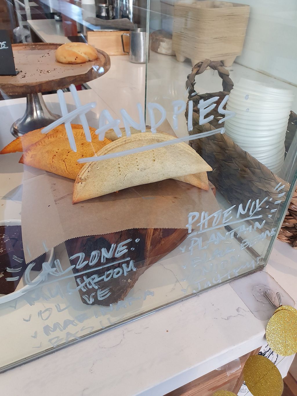 Read moreThis Phoenix Hand Pie had black beans, plantains, onions, jackmeat, with a yummy curry sauce 🤤 we also loved the calzone, the delightful cupcakes and the hibiscus tea!