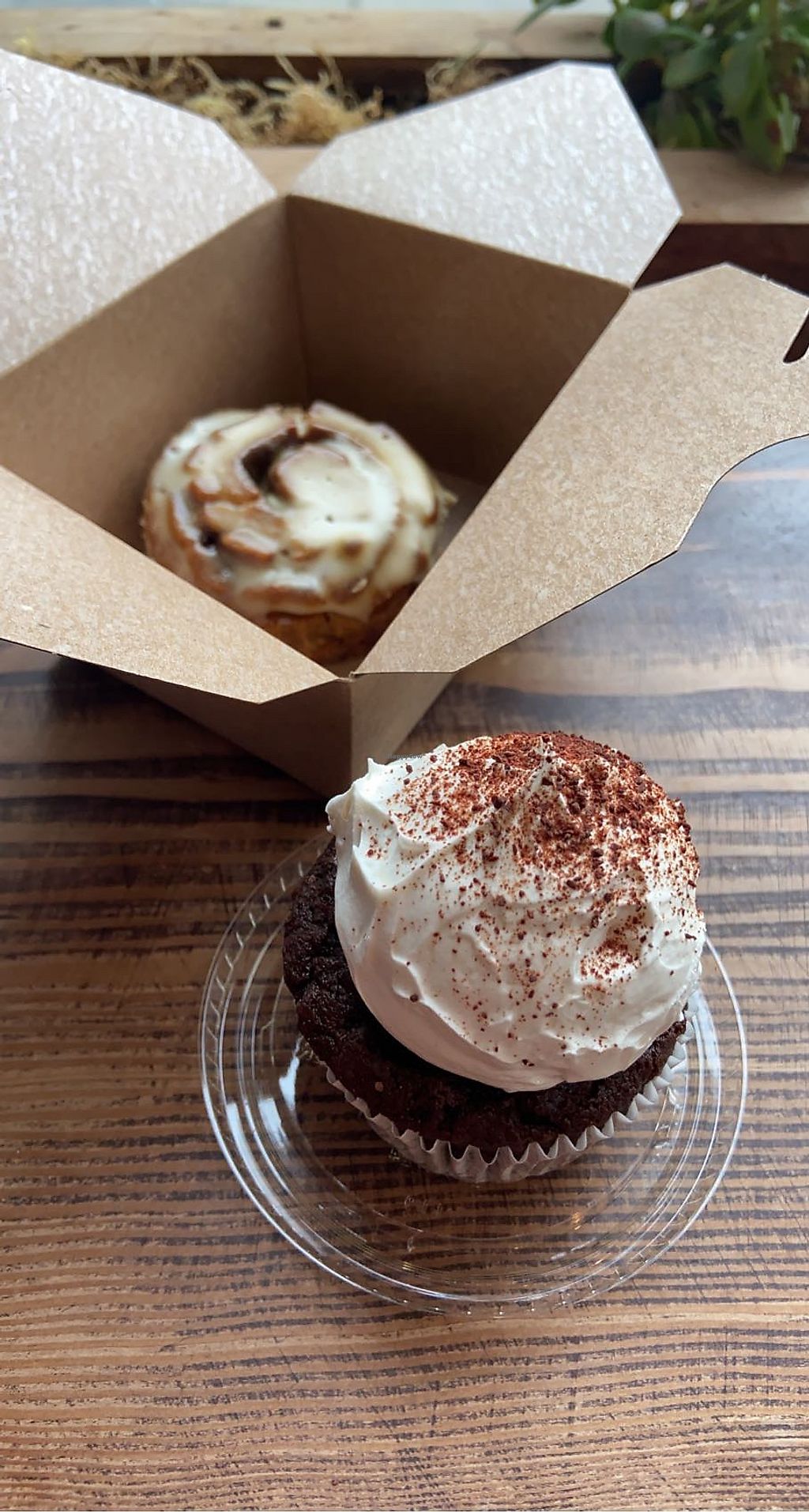 i bought cinnamon rolls and they were dry and kinda tasteless, but the cookies and the cupcake were good