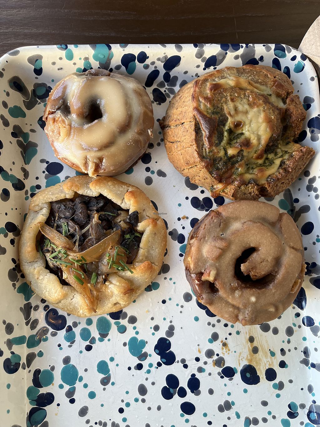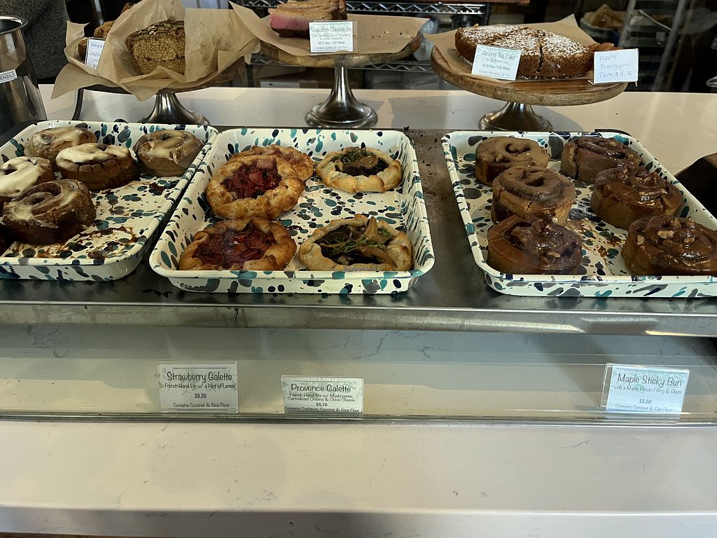 I tried 3 different pastries (cinnamon roll, almond cake, and some kind of savory onion-mushroom galette), all were amazing! Please support this local bakery for a quick bite. They also have cold grab-n-go meals for lunch/dinner/dessert.