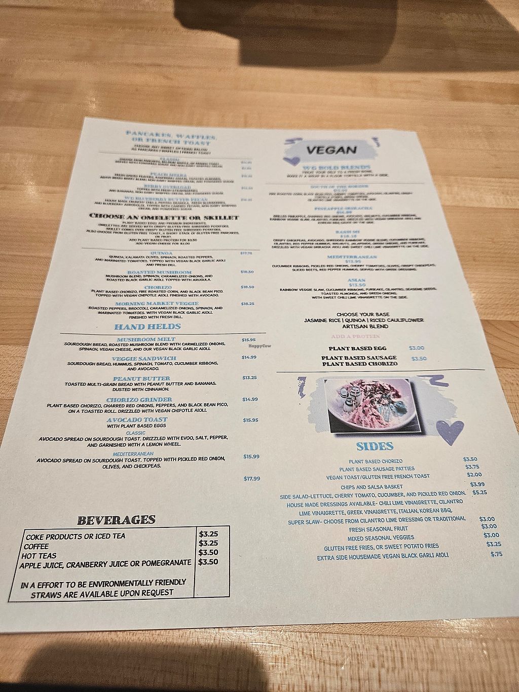My partner is omni while I'm vegan, so brunch spots in the area are hard to come by. The food here is SO good. They have plant based egg and plant based meats, along with vegan waffles and pancakes. Will be back soon!!