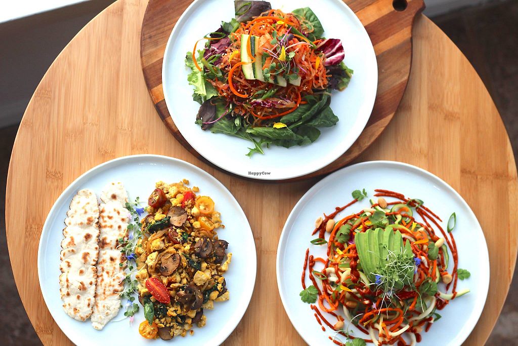 Tofu Scramble, Raw Korean Kelp Noodle, Raw Rad Thai