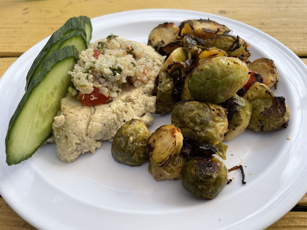 house made hummus with quinoa and marinated brussels sprouts - yum! #V…