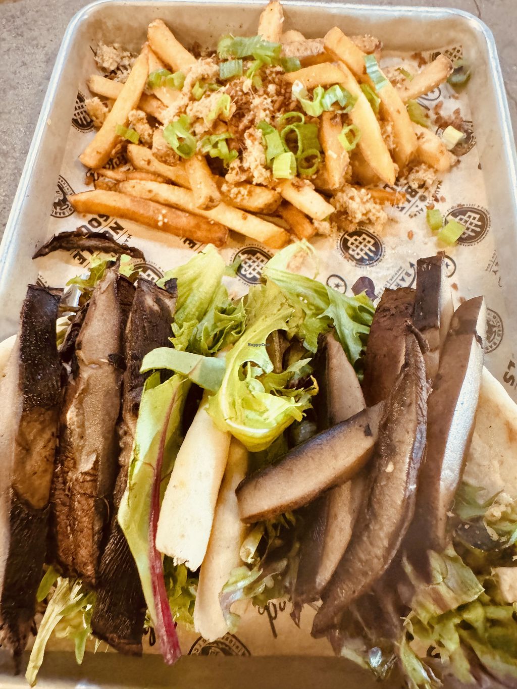 Could they have more vegan options? yes they could. But they do have a few solid options that are not clearly marked on the current menu but they had an “allergen friendly” menu with a vegan section. We split the portobello flatbread wrap with garlic ginger fries. It was good, though next time I will ask them to grill the portobello’s a bit longer. Location is really cool!!