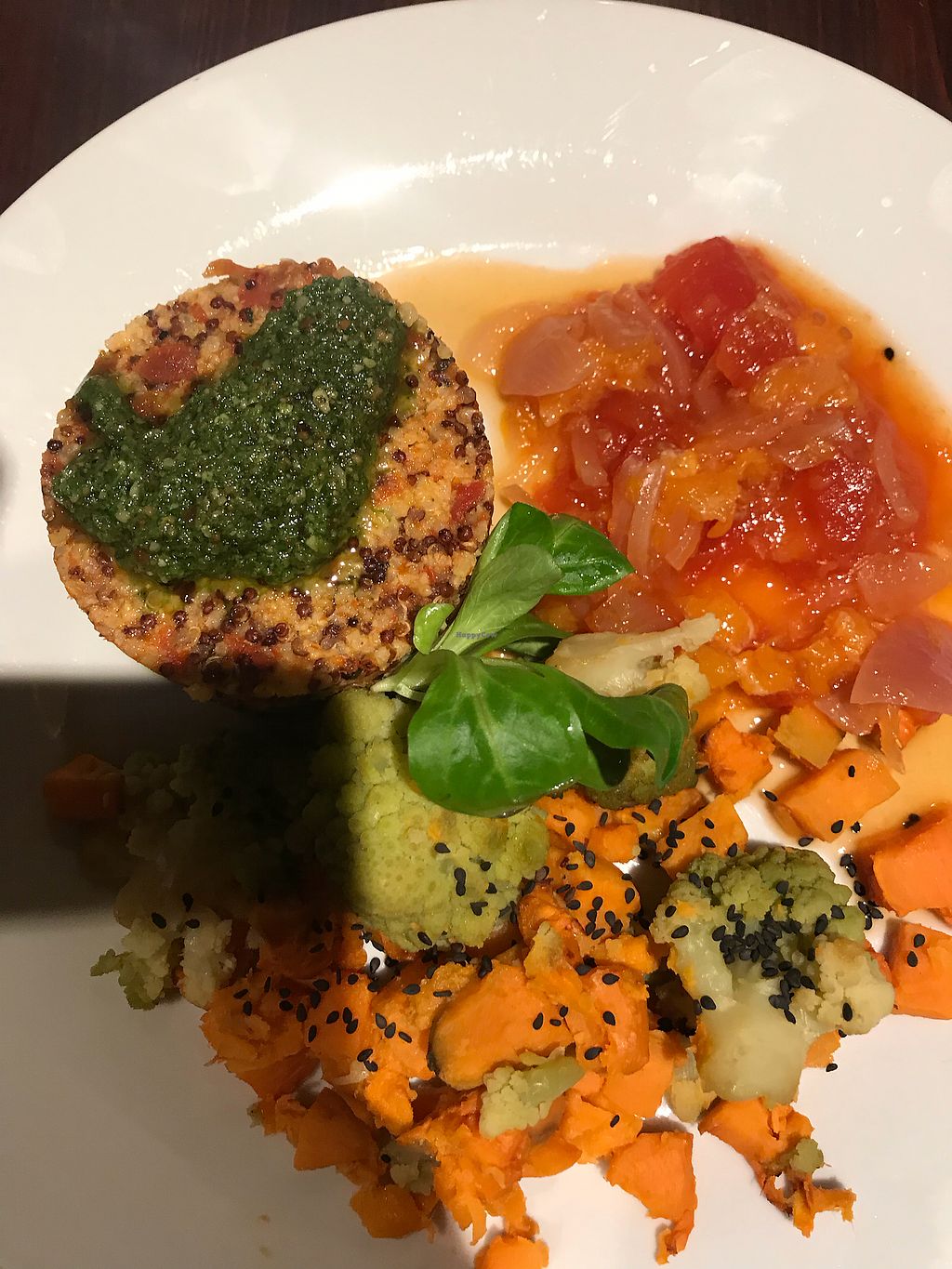 Raw Zucchini tagliatelle with Kale pesto, with a side of tomato salsa