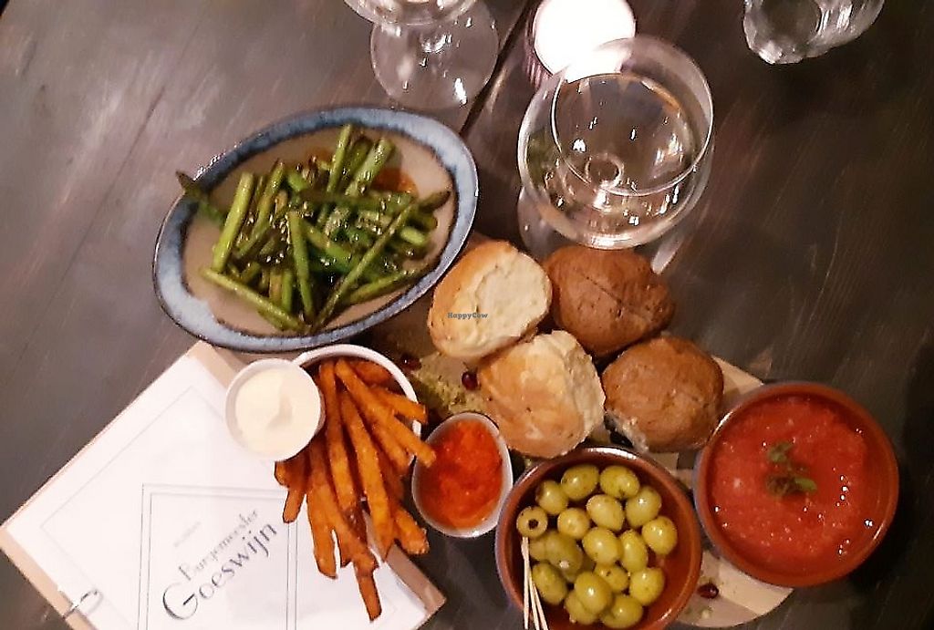 Wine and tapas bar with labeled vegan options including cauliflower pakora, sweet potato fries, salads, dessert and more. Previously known as Burgemeester Goeswijn. Reported closed February 2023.