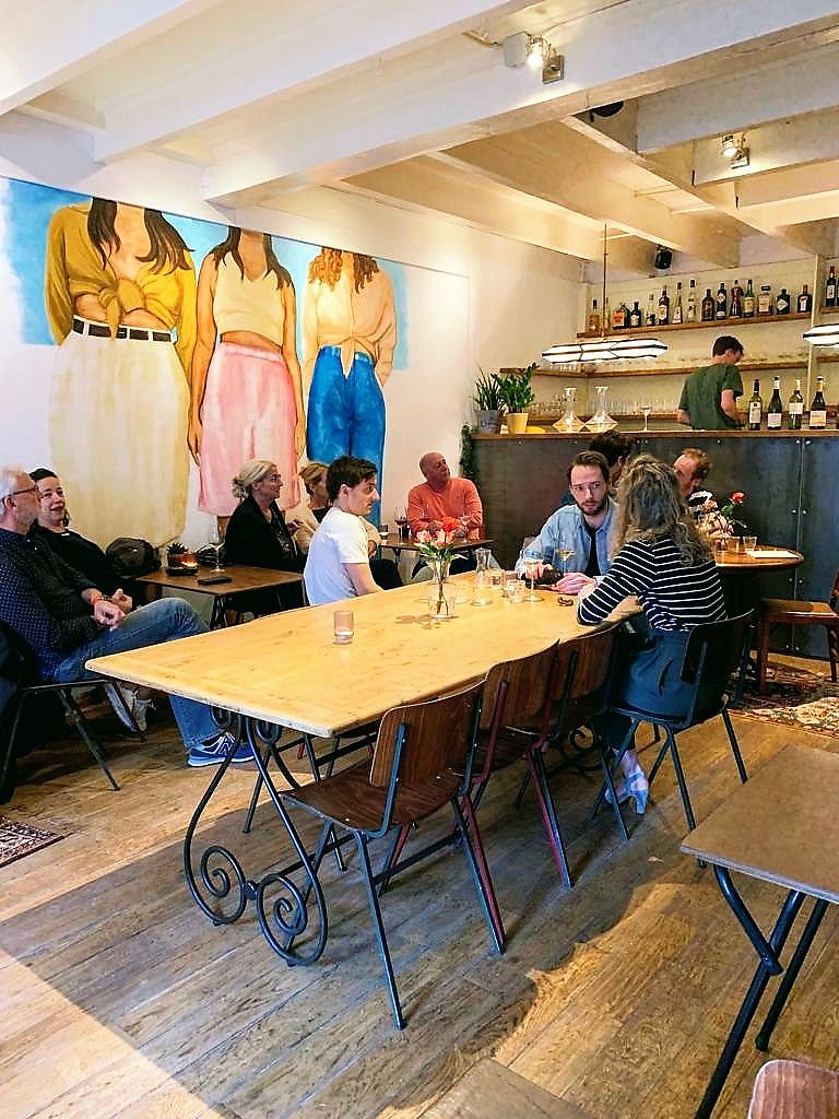 Heel erg lekker veganistisch gegeten, de menukaart is volledig vegetarisch met veel veganistische opties. Heel leuk plekje, leuk ingericht en fijne muziek (ze draaiden plaatjes!). Lieve en enthausiastie bediening. Ze wist heel veel over de heerlijke wijntjes die ze ons serveerde. Zeker een aanrader!