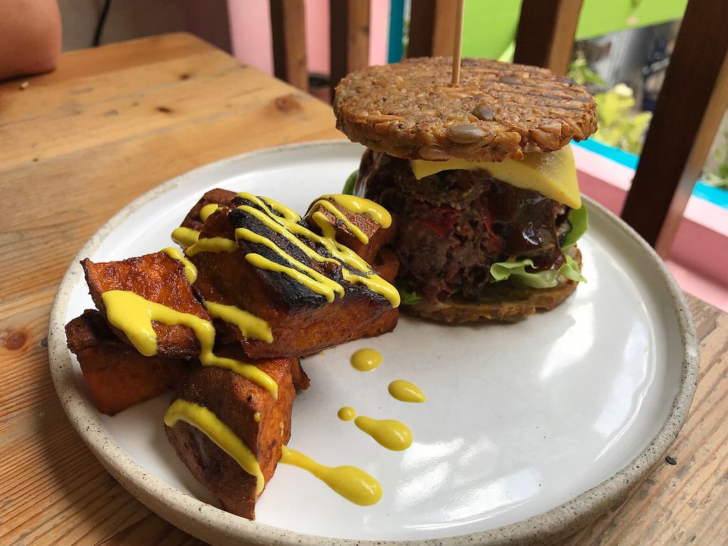 The Green Samurai Burger 14.5 GBP Raw pink olive, shiitake mushroom & …
