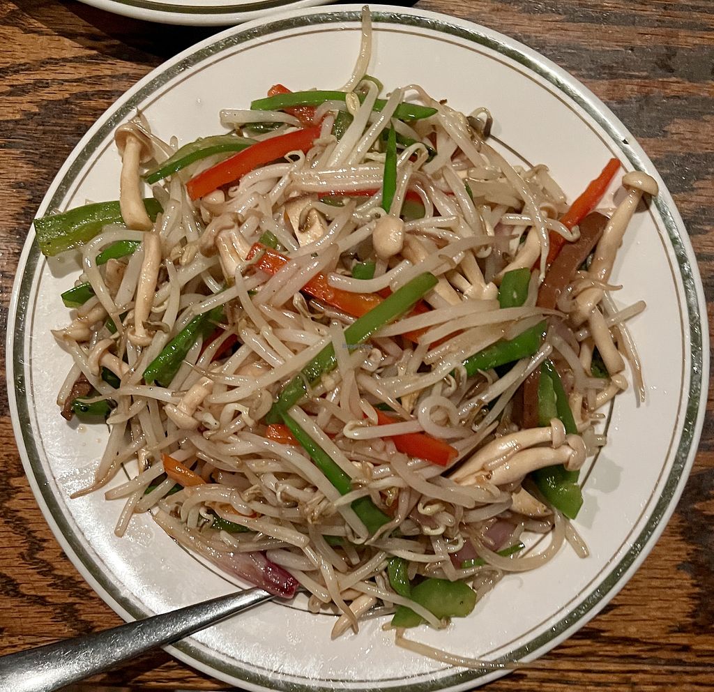 Eggplant in Garlic-Basil Sauce, served with rice ($16)