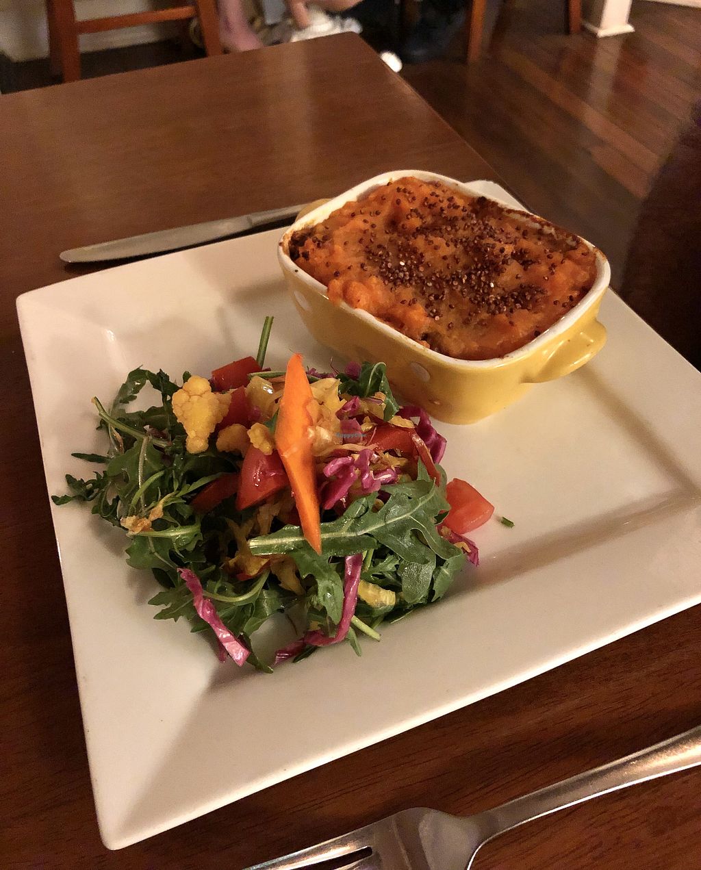 We enjoyed dinner here after a long day hiking. Pleased to see a vegan menu on request. Heirloom tomatoes for starter and very tasty vegan cottage pie with sweet potato. Good flavours and nicely presented. Portions a little small though so if you’re hungry, order a side or two! Would come here again. Nice beers brewed on site too.