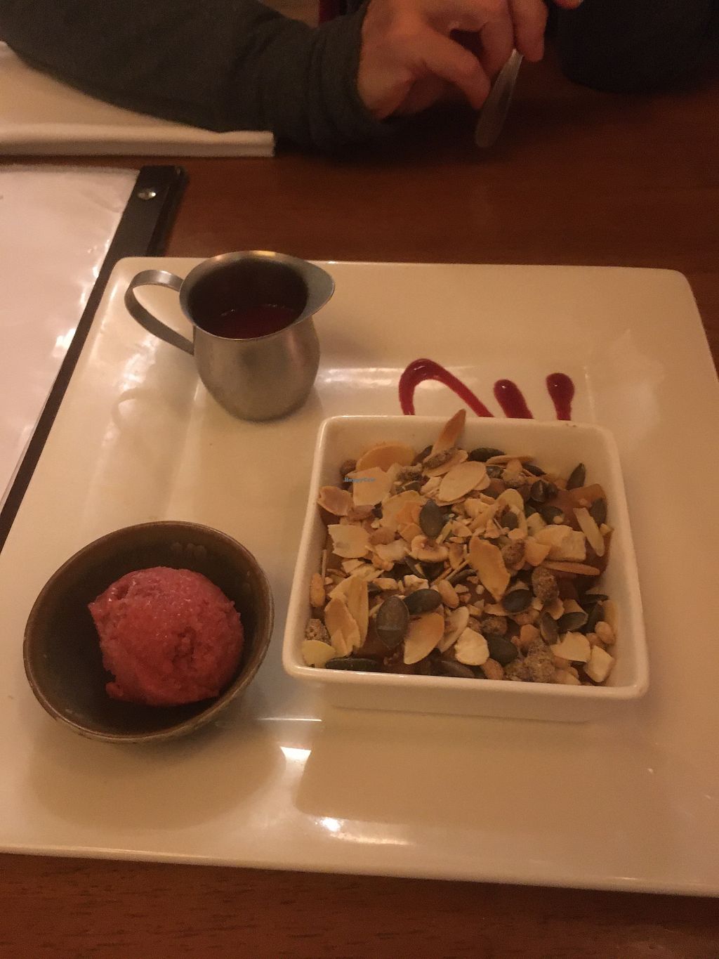 Absolutely lovely little restaurant, super accomodating to pup owners - which we love!! They have vegan options listed on their main menu, however there are additional vegan menus upon request. Food was just divine! For entree I would recommend the tempura veg, it was not what we expected (in the best possible way), super fresh and original flavours. For dinner I would recommend the koftas, absolutely delicious. For dessert there are 2 vegan options: warm berry crumble with mulberry sorbet (so good!!) or rice pudding (didn’t try this one though). Highly recommend if you’re in the area! The cocktails with frangelico were also rather yummy, very unique flavours!
