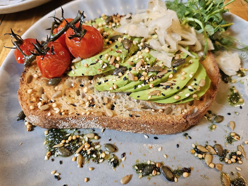 Still my favourite place, we had a breakfast of banana bread with yoghurt, berries, crushed pistachios and edible flower. Hubby had TLT which was avocado, tempeh, tomato, lettuce and mayo. Plus two oat cappuccinos. So good I forgot to take a photo 😁 You can now book a table which I would advise as does get busy and not a big place.