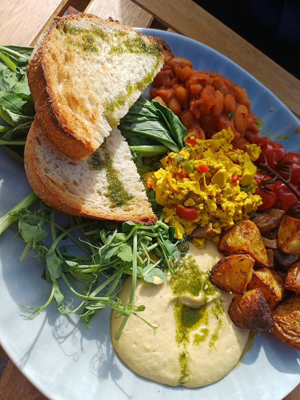 Fantastic cafe serving fresh, nutritious and delicious WFPB food. The deli counter offers ready made sandwiches, bagels, salads and the chiller has a range of fermented food and drinks on offer, as well as a range of cashew cheese to takeaway. There is also a cook to order menu and I opted for the full cooked breakfast from this, although there were lots of choices I’d have loved to try too. Food was delicious, the chai latte was good too. The cafe itself has a lovely cosy vibe and is dog friendly. There is a ramp outside for access, and once inside the cafe is all on one level. Car park right in front of the building and this is free to use.