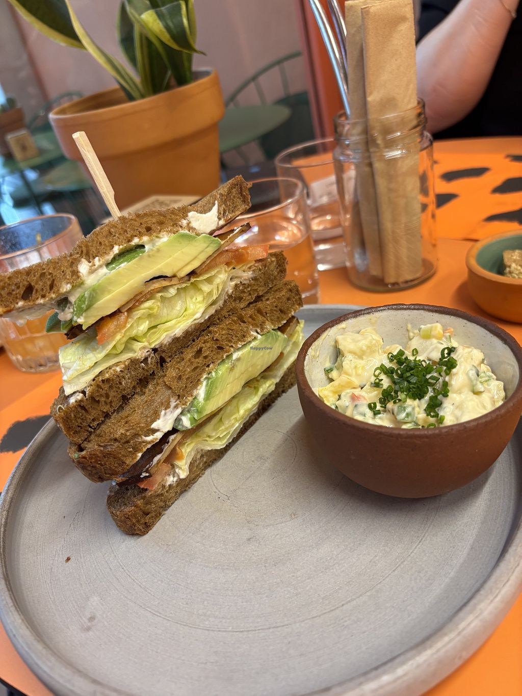 At first I wasn’t sure what to order as in wasn’t clear from the menu what was vegan and what was vegetarian but the staff then said the full menu is vegan which means you’re really spoiled for choice. I went for the club sandwich, which I think may have been the best I’ve ever had - it came with a little potato salad which was heavenly. My wife got the little pancakes, I tried them and they’re also amazing! We each got a cocktail too which was delicious and strong! Recommend this place!