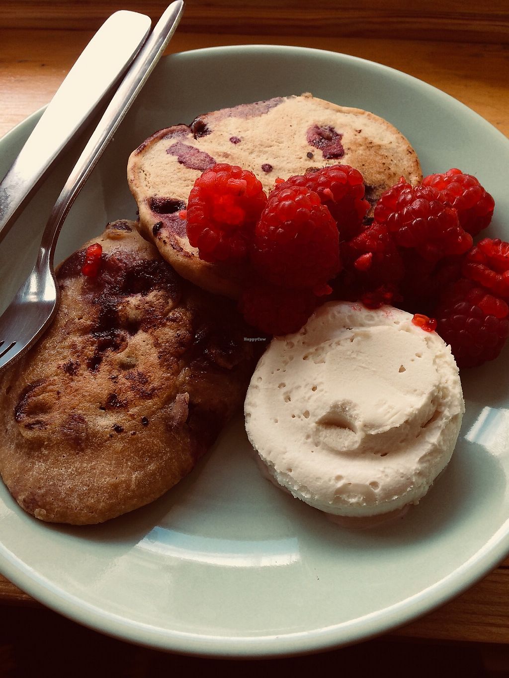 Blueberry soulcakes with vanilla ice cream and raspberries