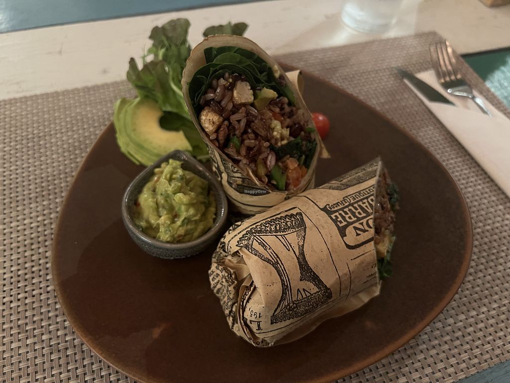 vegan salmon bagel with avocado side salad