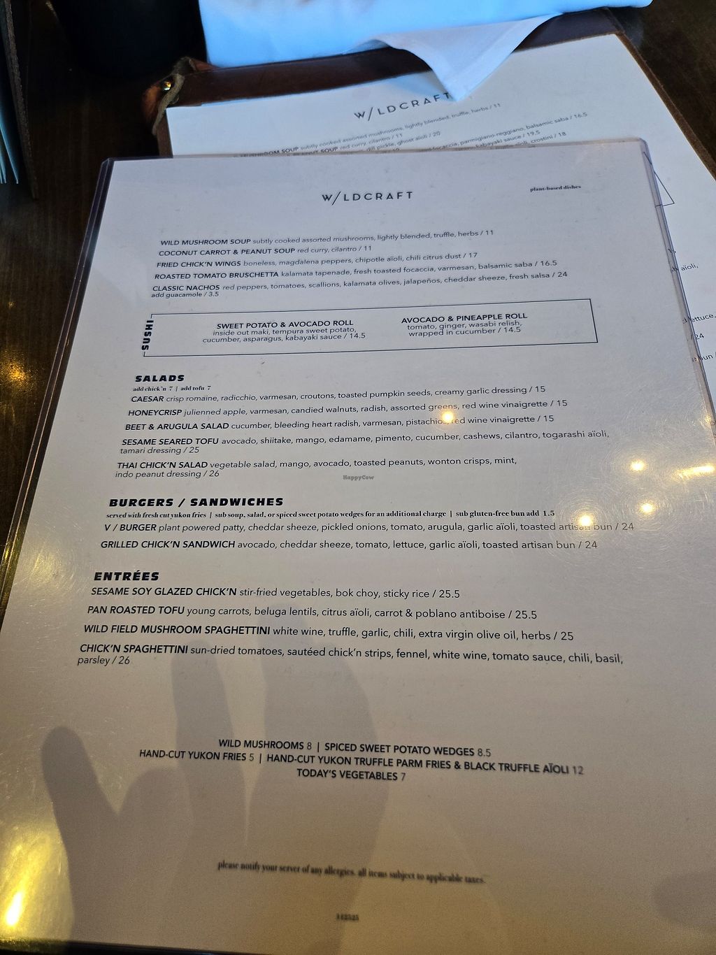 No longer has separate vegan menu - Edit