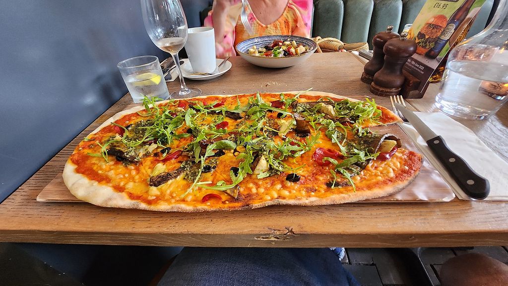 Serves meat, vegan options available. UK chain of pizza, pasta, and grill restaurants. Has separate vegan menu offering wood-fired pizzas with vegan cheese & veggies as well as a few salads, a couple of pasta dishes, risotto, and the beyond burger. Menu is posted on its website. Open Mon-Sat 12:00-21:00, Sun 12:00-20:00.
