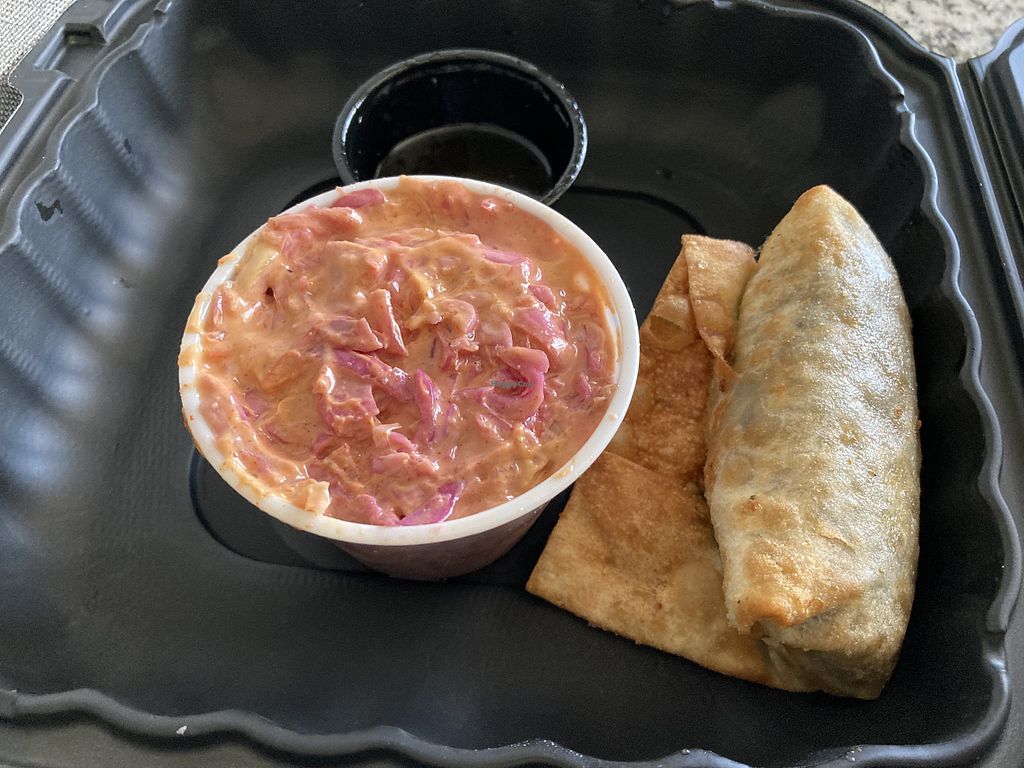 I ordered from here because I wanted to support a vegan place at North Market. The owner was very friendly, and the food had good flavors. They were out of a lot of stock when I was here (due to a convention) so choices were limited. Even their full menu isn't huge, so there weren't that many items that appealed to me. I would eat here again, but not as much as other places in NM.