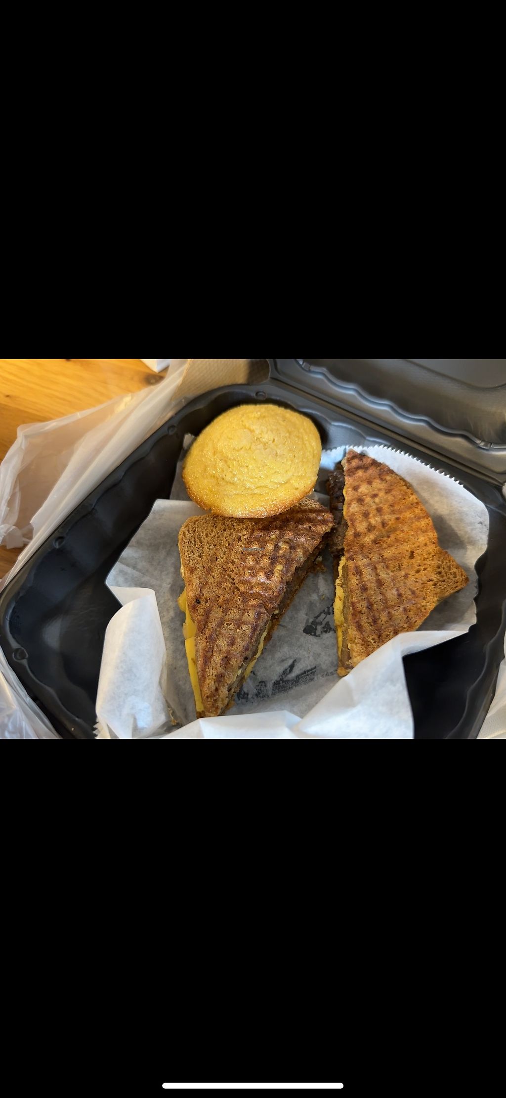 We got the breakfast sammich and cornbread! Both were 10/10! Also had a sample of the Mac n Cheese and it was great! Can’t wait to try more from here someday!
