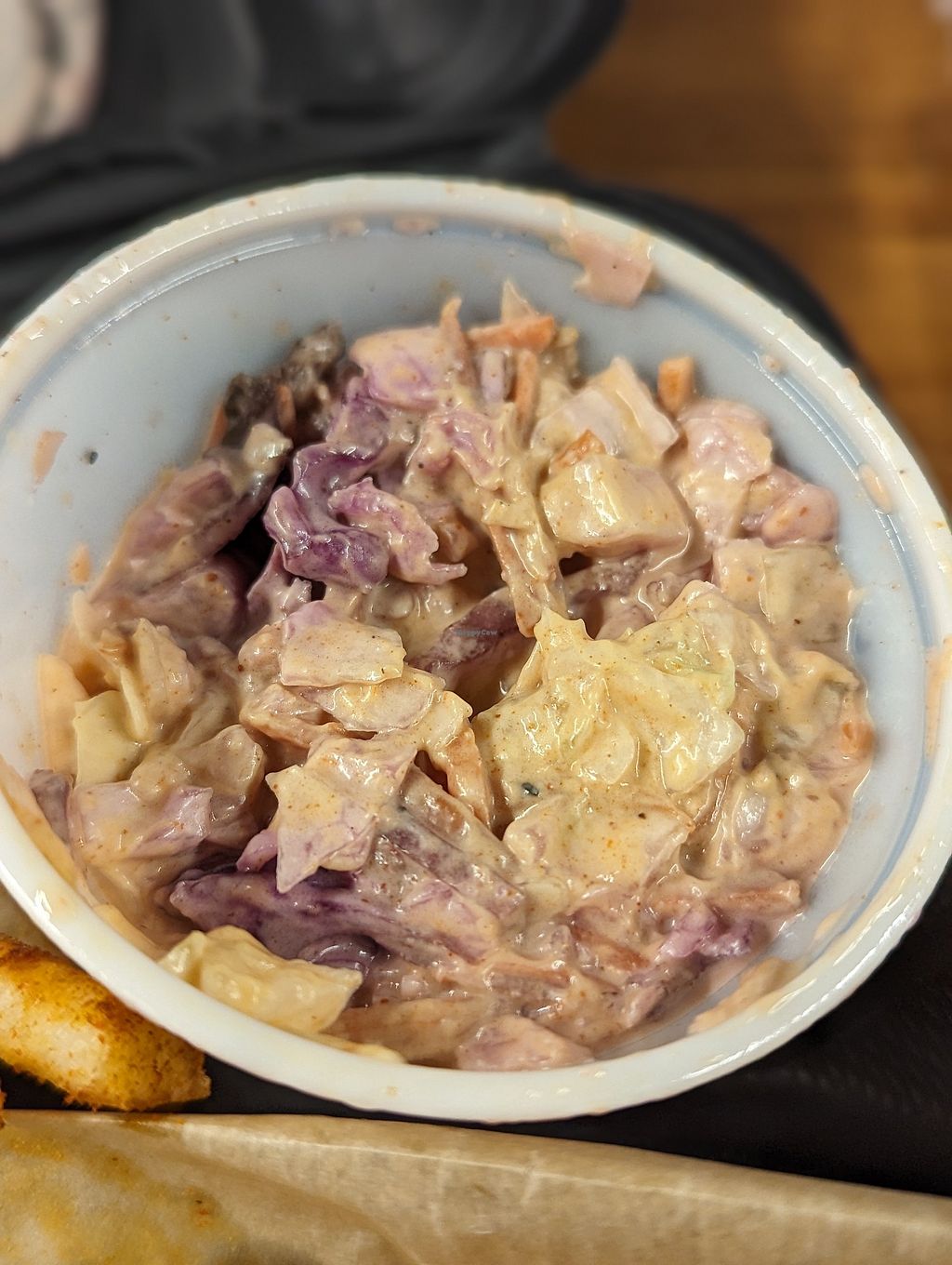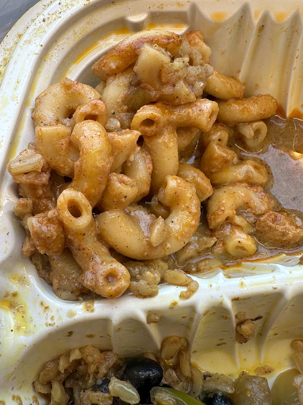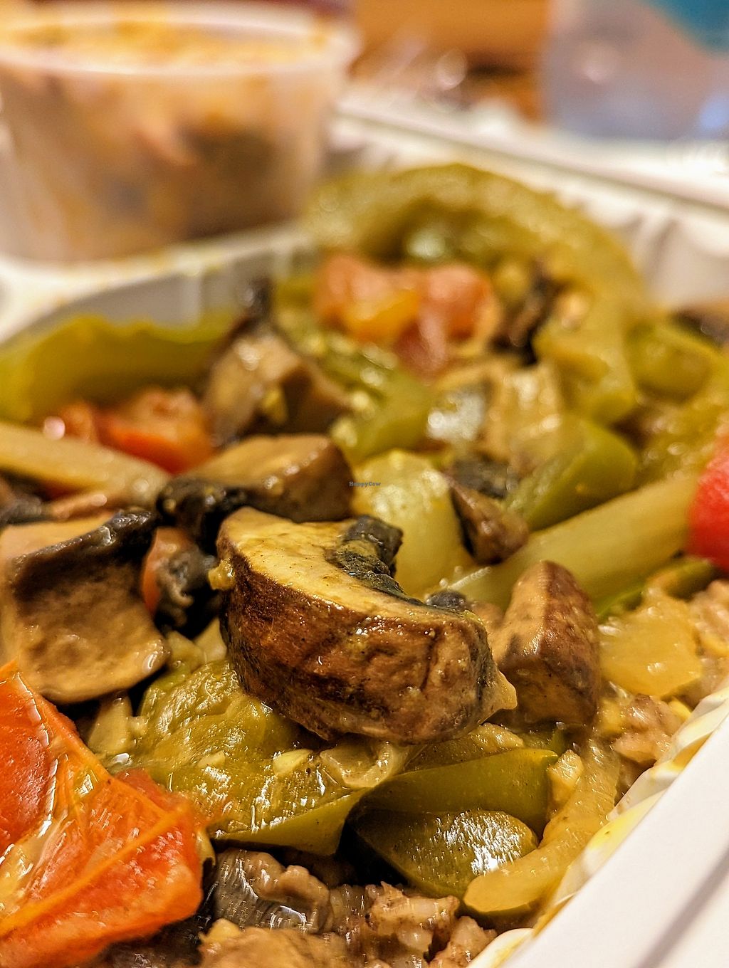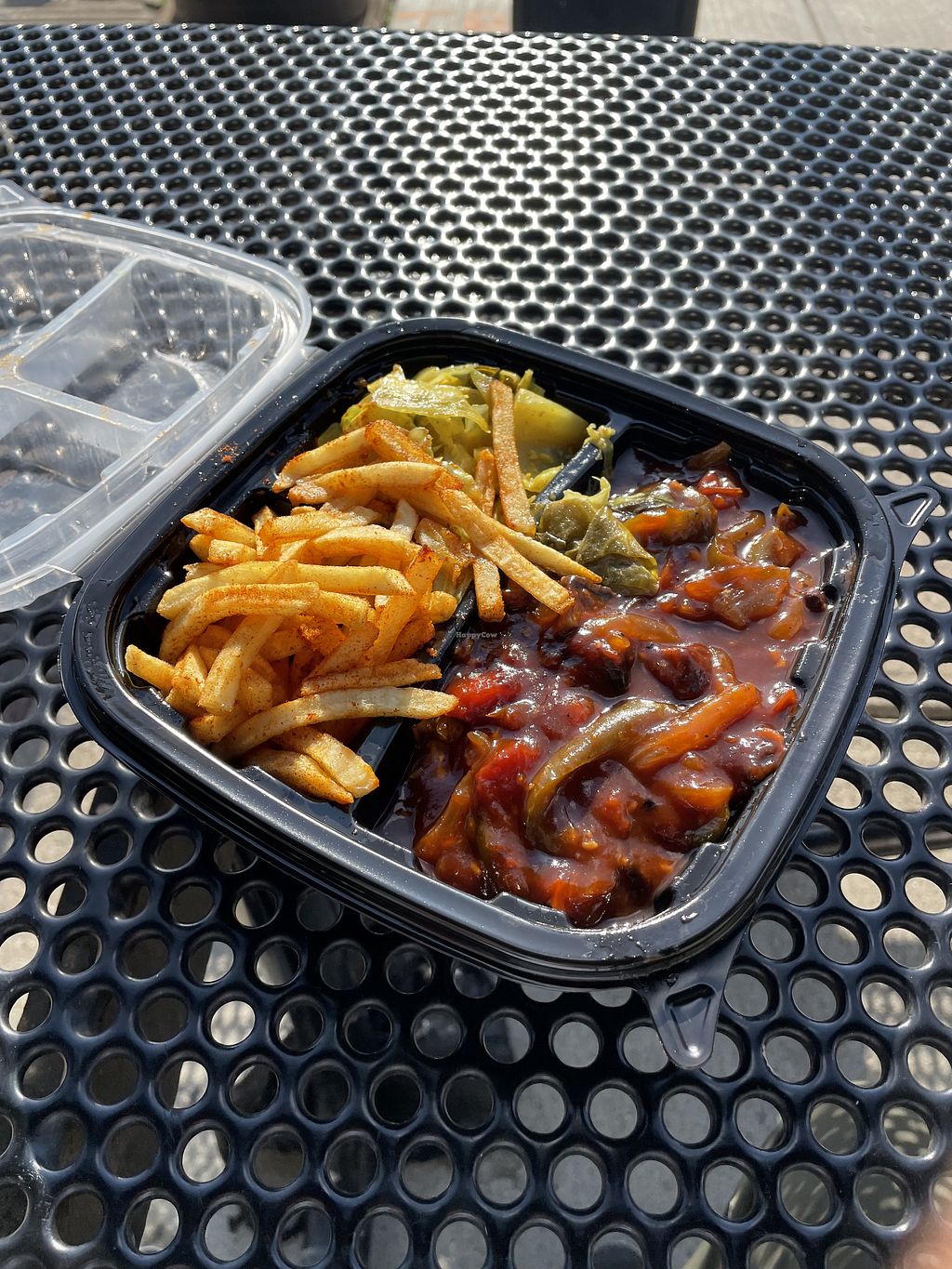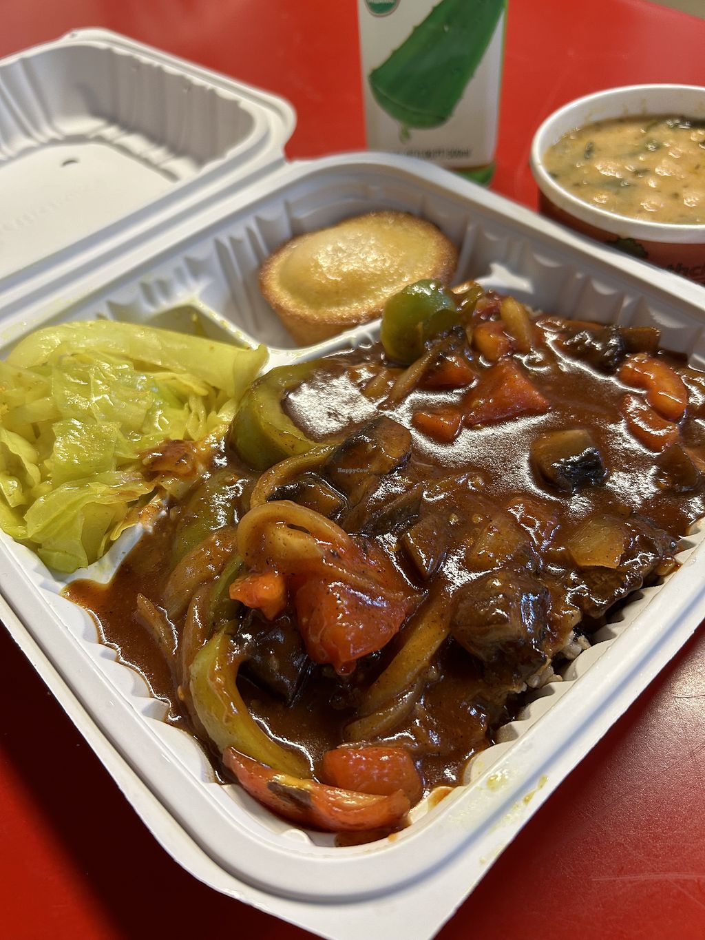 I had two entrees, half bbq / half curry with rice and beans and cabbage. The entrees had very distinct flavors and really tasty. It was all vegan so I didn’t have to worry about cross contamination. I’d go again. It tasted great.