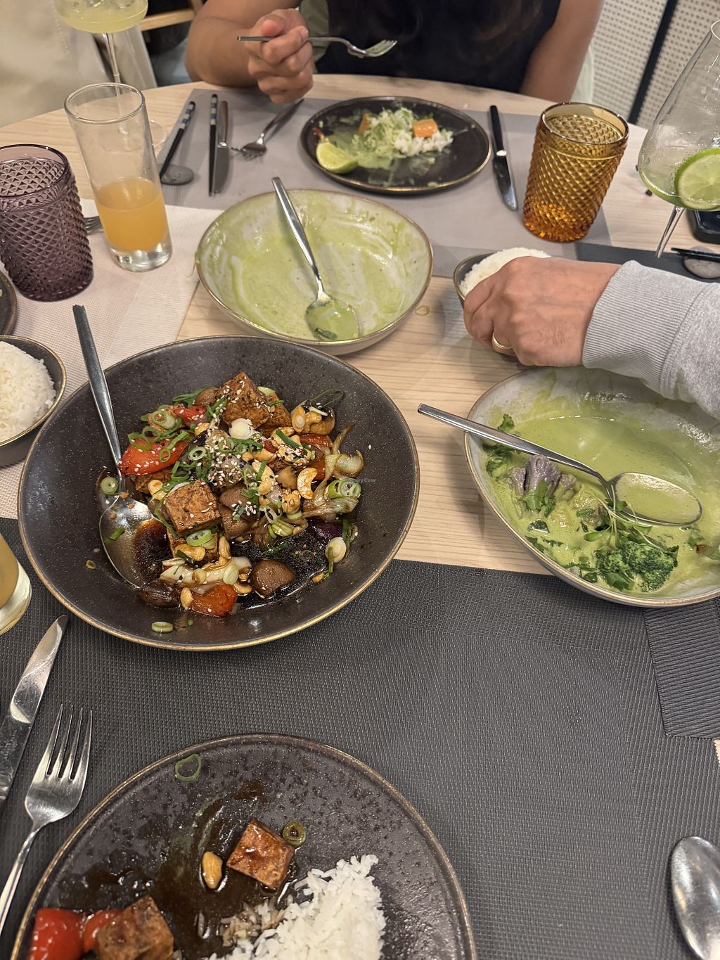 When we arrived there was only one other couple. There was no option to choose where to sit. We had to sit next to the other couple (50cm apart) the rest of the restaurant was empty. There was too many staff. The English girl was shouting and looked stressed (no idea why, only 4 customers..). The other staff was very nice. The spring rolls we orderedd were different then expected. Looked more like sushi, not really my cup of tea this version. As a main course I had Pad Thai vegan (which is not on the menu but they made it vegan). Pad Thai was ok but not special, the portion was big.