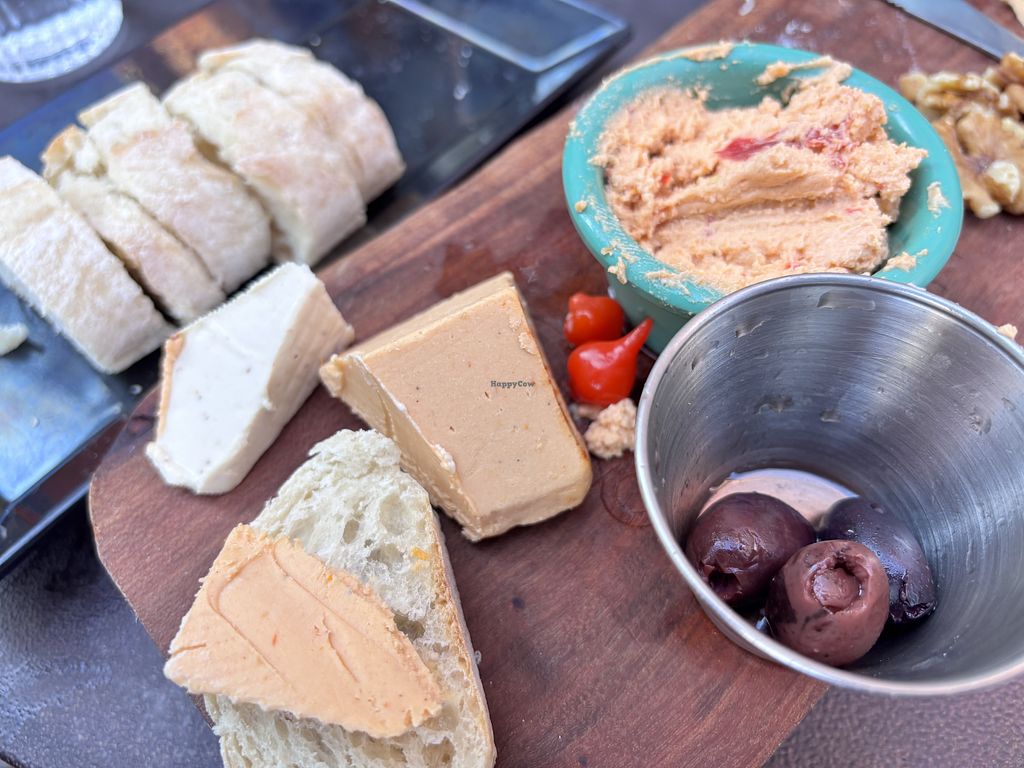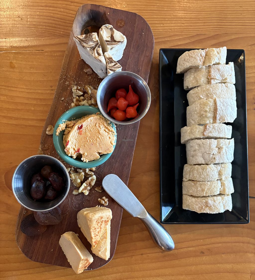 lovely vegan charcuterie board with three local cheeses and other fixings. great staff. nice drink menu. my NA friend likes their wine.