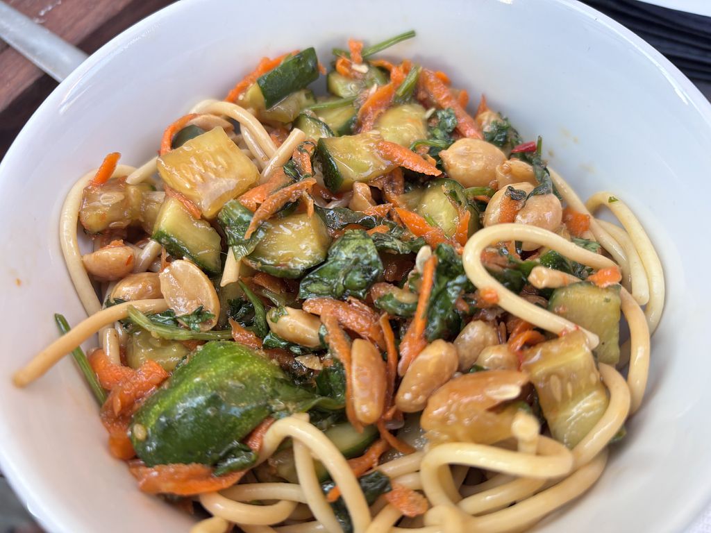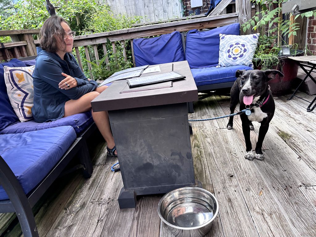 The vegan cheese plate is really good! It features Asheville’s local Darë Vegan Cheese which is gourmet cashew based cheese that is the best. It comes with olives and bread and walnuts and other garnishes. I don’t drink alcohol but the THC mocktail was delicious. We sat on the patio with our dog and our waitress was super friendly.