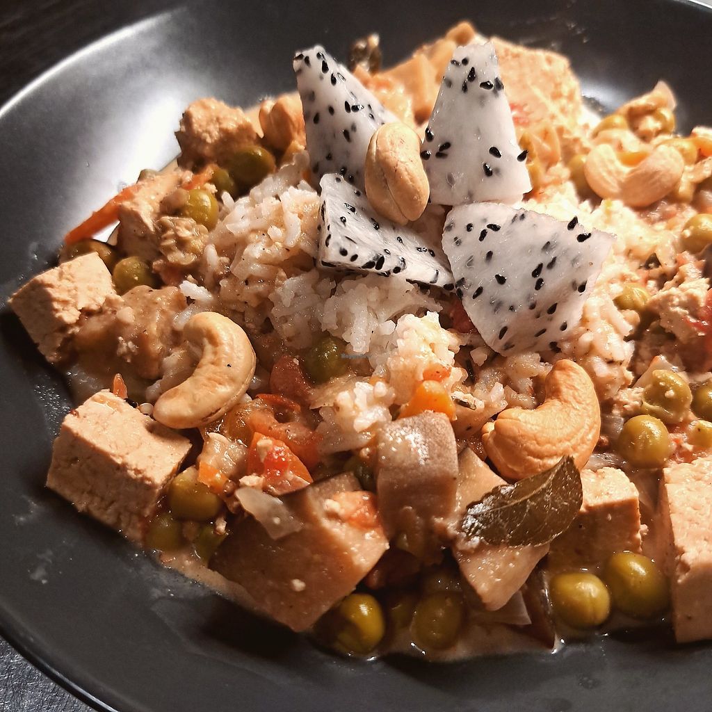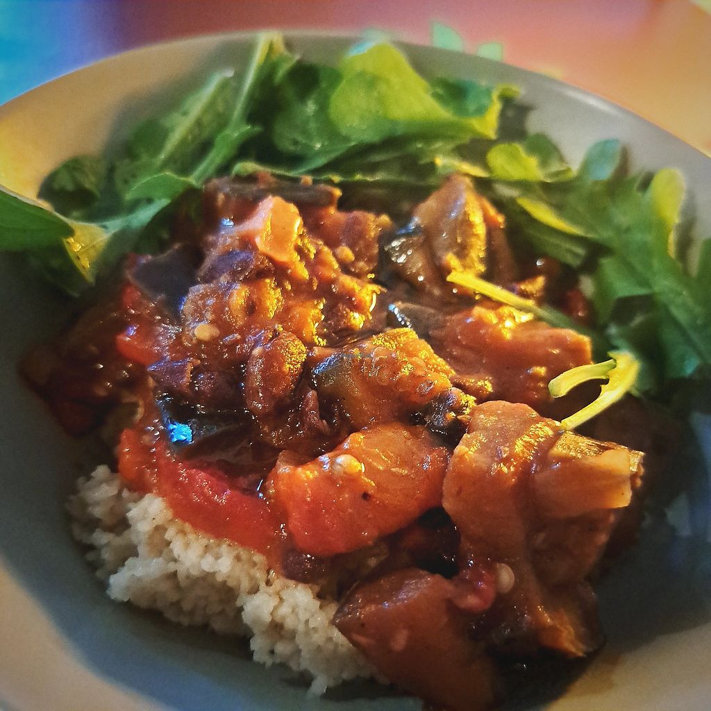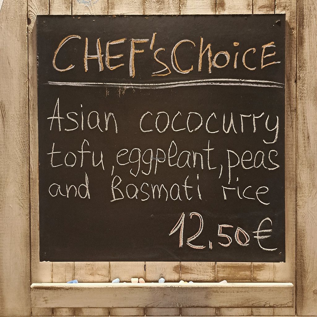 This is mainly a very nice drinks bar (wine, cocktails and artisanal beer), but they offer one vegan meal. We had couscous with a delicious babaganous, and regional cheese as well.