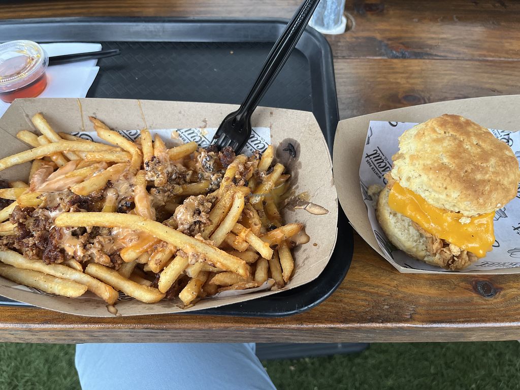 Biscuit and Gravy and Buffalo Chicken Sandwich