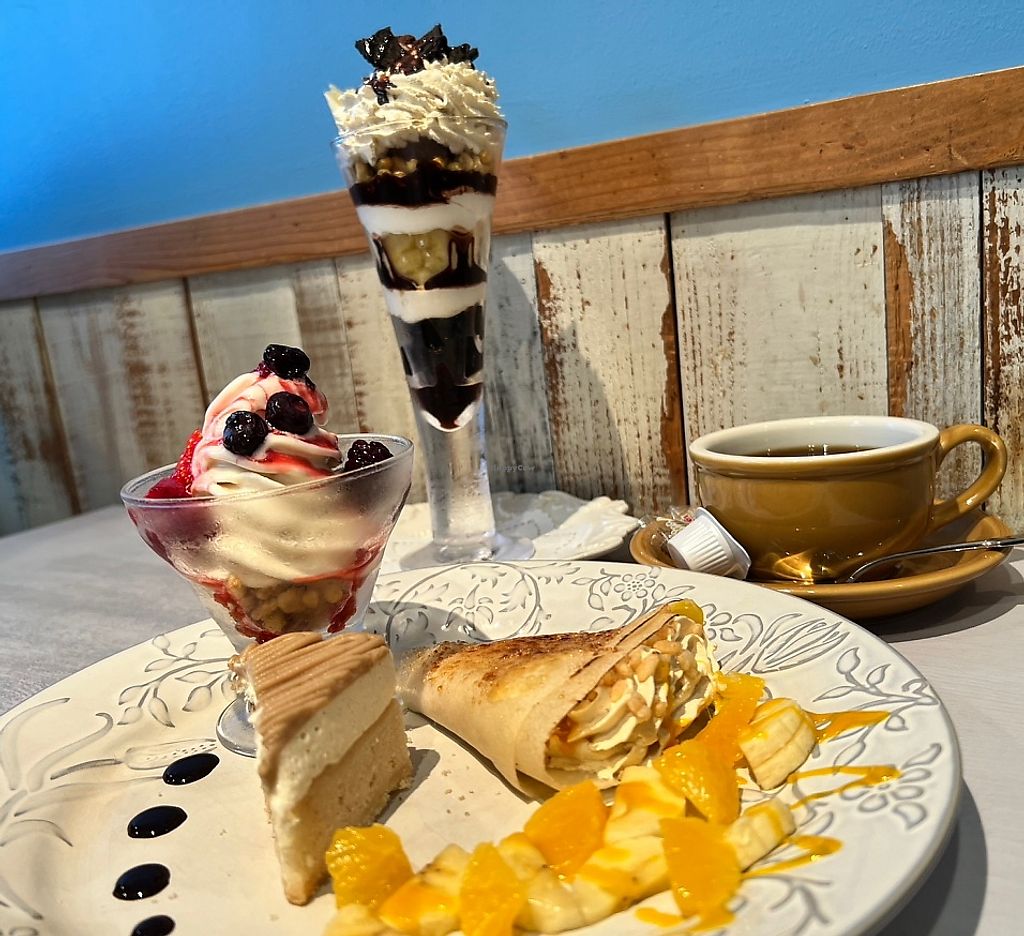 Yummy vegan Tiramisu, Best Soy Plate & Choco Banana Crepe & Soft Serve…