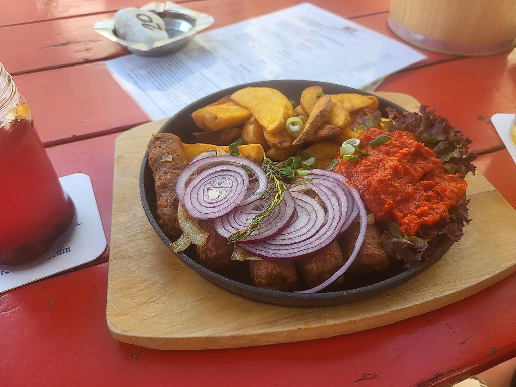 After a long walk in the museum it was nice to find plenty of vegan options. The vegan cevapcici with ajvar and potatoes were really great. I can also recommend the homemade berry lemonade.