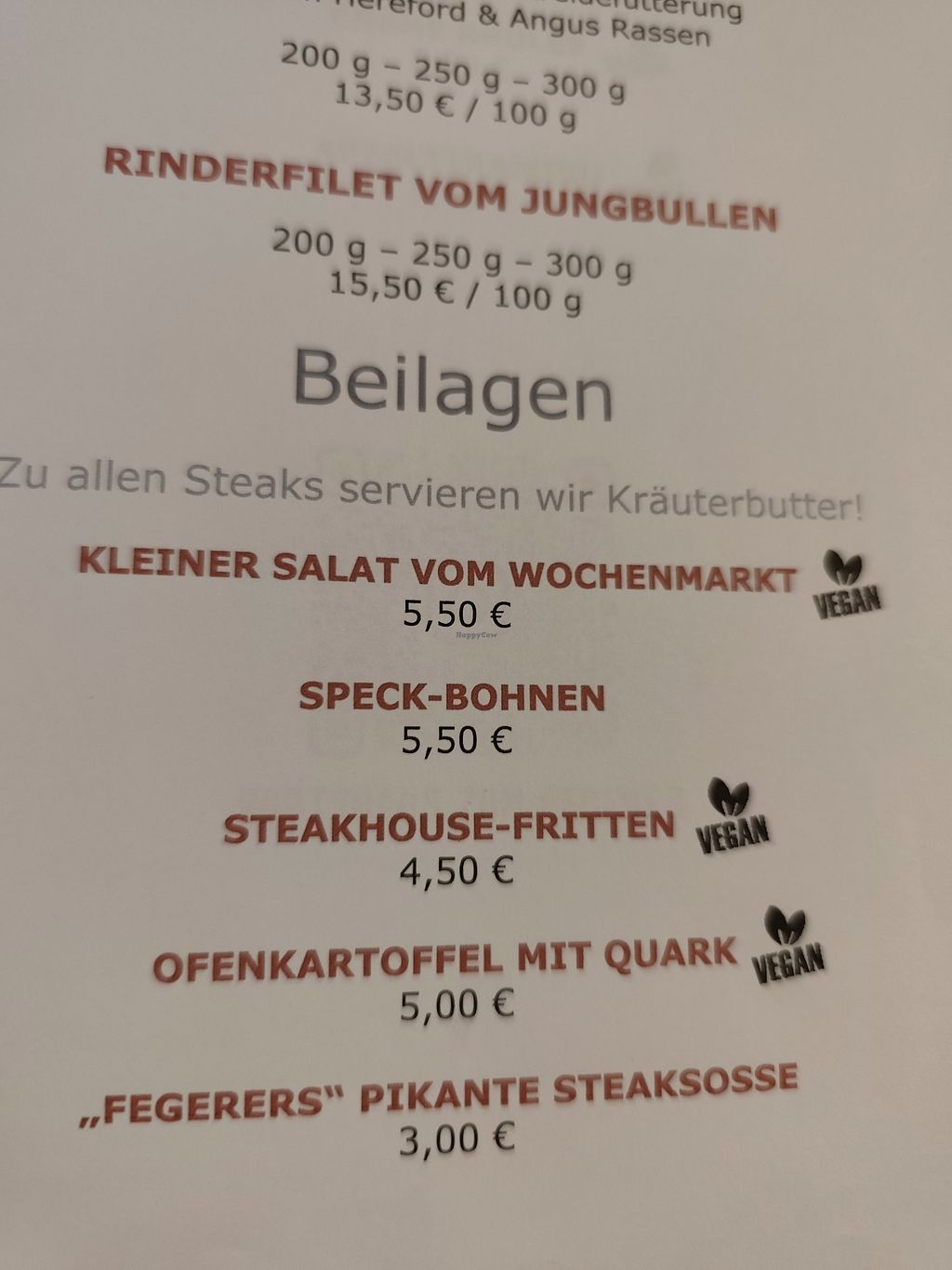 Der Fegerer hat eine vielzahl von qualitativ hochwertigen Veganen Speisen. In fast allen Kategorien bietet er etwas an von Vorspeisen, Hauptgerichten und Desserts.
