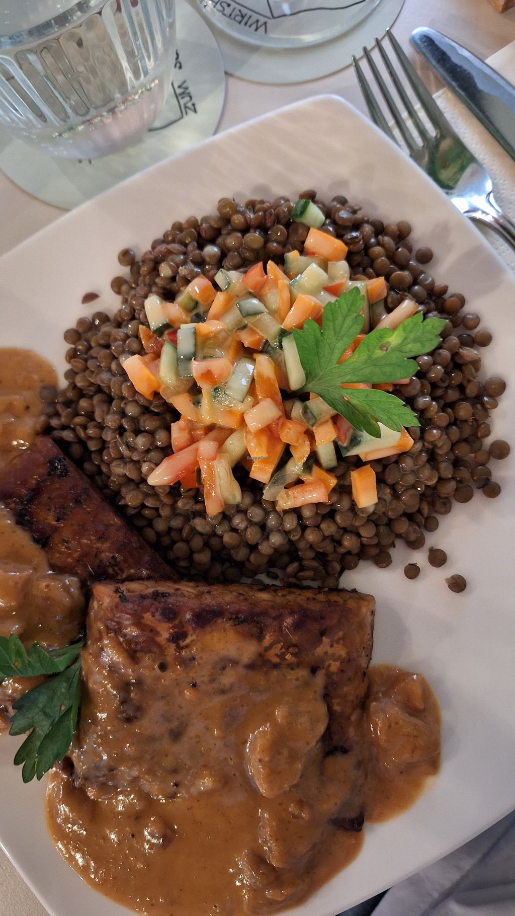 Zucchini Pasta mit Räuchertofu, Burger mit "Bacon" und "Ziegenkäse"