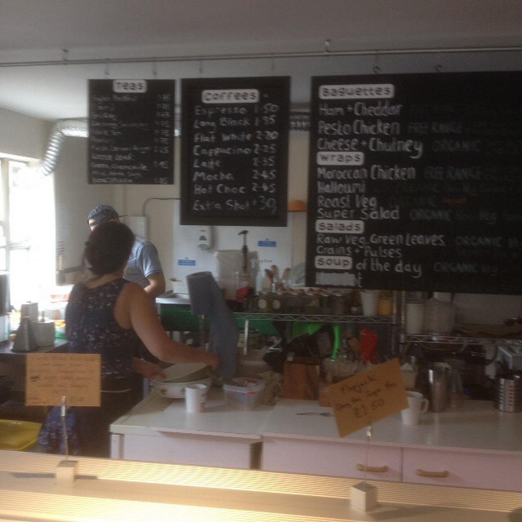 Serves meat, vegan options available. Small wholefood cafe in Stokes Croft, since 2014. Has veggie items, almond milk for hot beverages, vegan breakfast. Confirmed closed with plans to relocate, Feb 2018 - please send updates.
