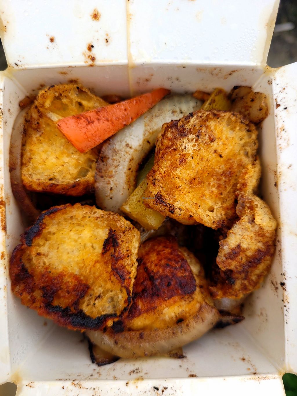 The food was prepared really quickly, and the portions are very generous. The flavours in the dishes were nice and the veg was lovely, although sparse, but the tofu wasn't very good. The pieces were overcooked with a chewey texture and were also incredibly salty.