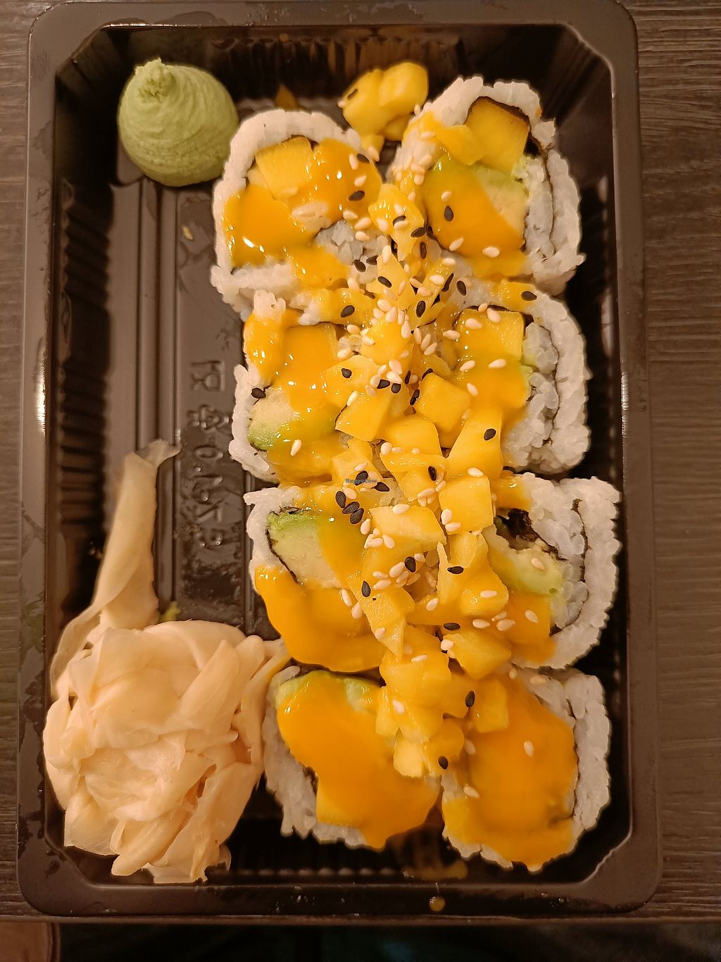 Seems like a take away place, as it's not very charming inside. Nice staff though. I had vegan mango maki, and it was very average. Has different vegan dishes, so maybe some of the others are better.